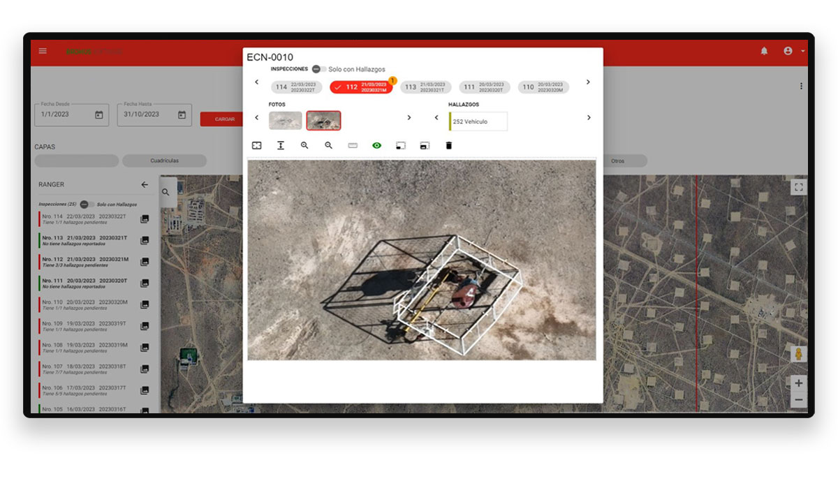 This service began to be developed in 2019. We use innovative technologies (drones, software development, application of artificial intelligence processes), which autonomously detect damage and losses in pipelines. The main objective is to offer customized solutions to the problems or challenges presented to our clients.